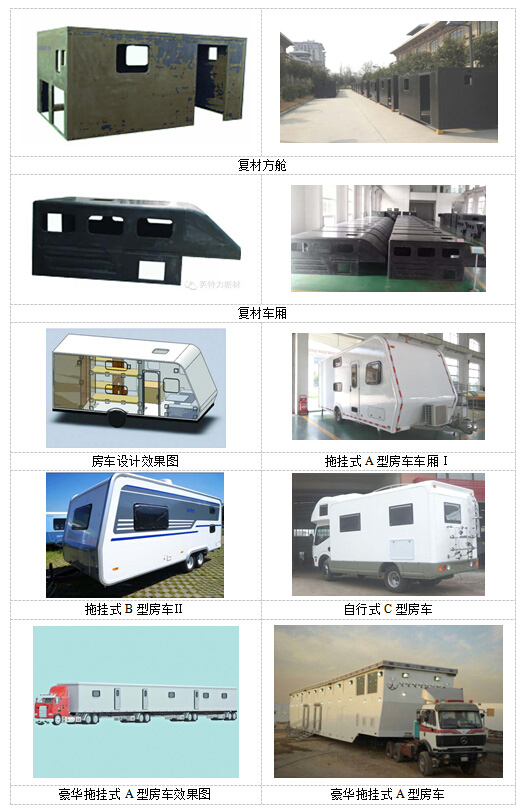 公司將復合材料軍用方艙的成功經驗應用于房車領域,開發了系列復合材料房車車廂,包括拖掛式房車車廂、自行式房車車廂和移動別墅。我公司生產的復合材料房車車廂適應多種露營環境,安全系數高,重量輕,是您房車的最佳選擇。