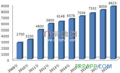 圖表1:2009-2018年全球碳纖維在汽車工業領域的需求量及預測(單位:噸)