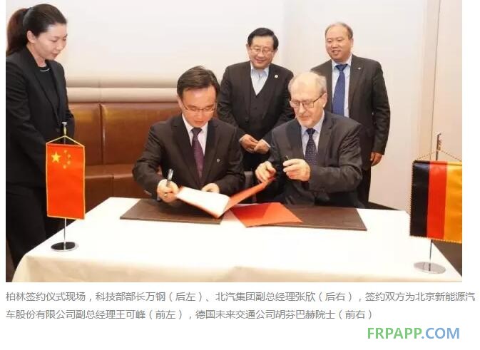 2016年11月24日,北京新能源汽車股份有限公司攜手德累斯頓工業大學胡芬巴赫院士團隊——德國未來交通公司在德國柏林正式簽署“中德汽車輕量化技術工程中心有限公司”合資合同,宣布中德汽車輕量化聯合研發合作正式落地。