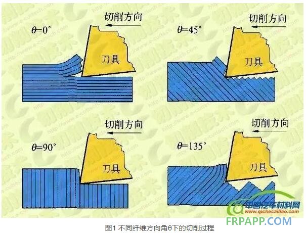 由于CFRP力學性能的特殊性和內部結構的多樣性,在切削過程中,材料的變形過程遠比金屬材料復雜得多,這不僅與刀具形狀及工藝參數等傳統因素有關,還受纖維和基體屬性以及纖維鋪層方向的直接影響。因此,CFRP的切削加工機理與傳統的金屬切削加工機理有很大區別。1.CFRP的切削機理