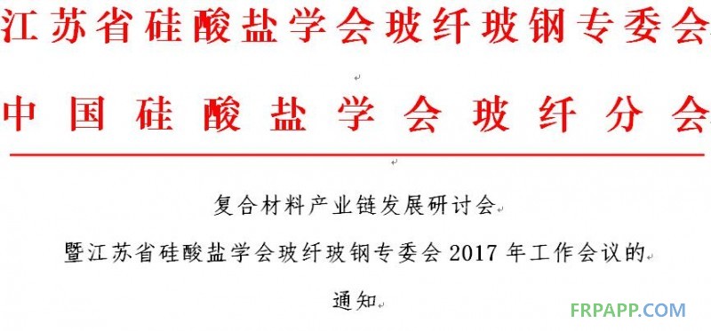 復合材料產業鏈發展研討會暨江蘇省硅酸鹽學會玻纖玻鋼專委會2017年工作會議的通知