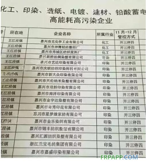 與此同時,嘉興王江涇印染企業開三停四!管控時間為11月-12月,涉及15家印染企業。