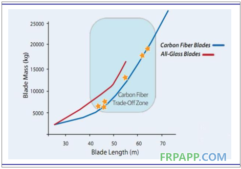 風(fēng)機(jī)葉片長(zhǎng)度超過(guò) 40m 后采用碳纖維更為經(jīng)濟(jì)