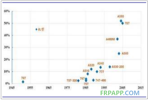 國(guó)外商用飛機(jī)碳纖維復(fù)合材料應(yīng)用占比