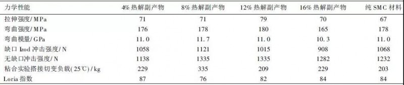 表3 含有研磨熱解副產物的SMC 性能對比表