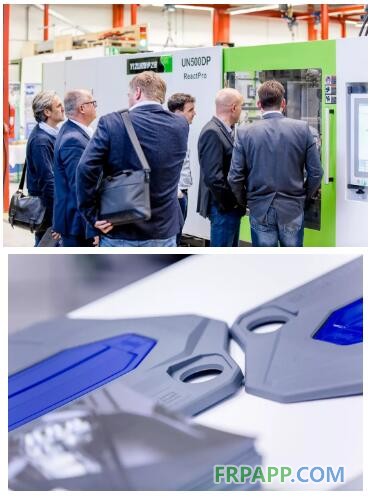 伊之密與合作伙伴Frimo提供的ReactPro方案,將注射成型與聚氨酯(PUR)包覆工藝結合在一起,更簡單、更模塊化、更靈活、更具成本效益。在Frimo總部舉行的聯合技術開放日上,第一套高度集成和自動化的ReactPro系統亮相,現場生產帶聚氨酯表面的發動機蓋,吸引了不少感興趣的專業觀眾。