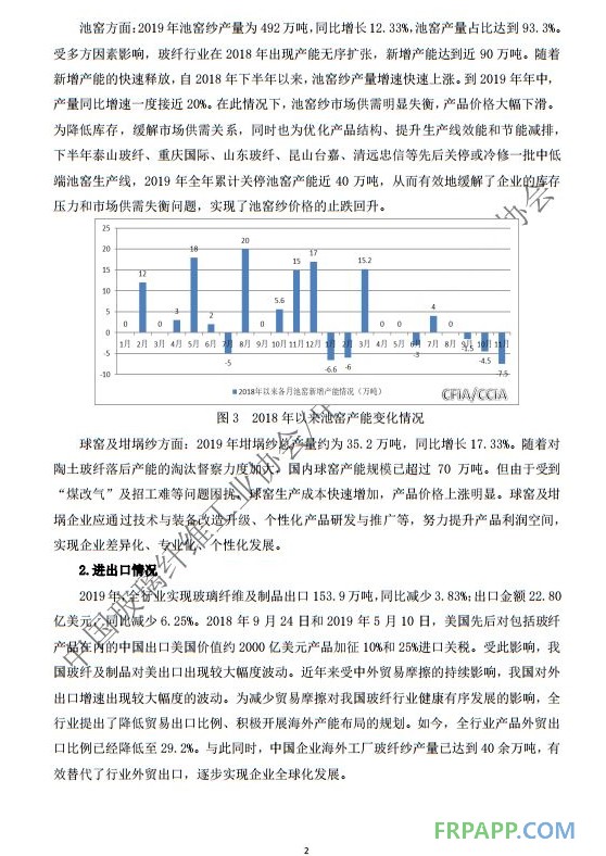 核心提示:導讀:據協會初步統計,2019年全行業玻璃纖維紗總產量達到527萬噸,同比增長12.61%。復合材料制品總產量445萬噸,同比增長3.5%。