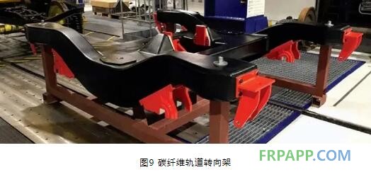 歐盟早在2000年制定的里斯本戰略中就把可持續發展作為重要政策來實施。如今,在歐洲,可持續發展的概念早已深入人心。     2019年,歐洲企業在纖維復合材料的回收再利用方面也有新的成果面世。英國ELGCarbonFibre公司是實現再生碳纖維商業化運作的公司,擁有世界上第一個也是世界上最大的碳纖維回收廠。2019年12月4日,ELG為助力英力士隊參戰美洲杯帆船賽,利用制造比賽船只時產生的廢料,將其再加工成非織造碳纖維氈,進一步用來制成了兩個固定船身的運輸托架,這種回收材料性能良好,可直接用于現有工藝,充分表明碳纖維復合材料可以進行回收再利用,減輕環境負擔。2019年12月10日,ELG和英國哈德斯菲爾德大學鐵路研究所UniversityofHud?dlersfield’sInstituteforRailwayResearch)聯合研究并發布了世界首個碳纖維復合軌道轉向架,稱為“CAFIBO”(圖9)。該新型轉向架完全由剩余和回收的碳纖維材料制成,比常規轉向架輕,并具有更優異的垂直和橫向剛度。在鐵路車輛中使用這種新型轉向架可以減少軌道磨損、降低基礎設施維護成本、提高可靠性和運營可用性以及節約能源,減緩全球變暖。