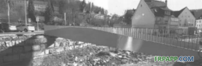 修建在德國阿爾布施塔特(Albstadt)的纖維網增強混凝土人行橋(簡稱TRC橋梁),是世界上首座將FRP纖維網作為增強材料的混凝土橋梁。該橋不使用鋼筋,結構厚度薄、重量輕,具有高耐久性。