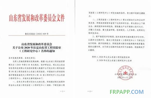 近日,山東省發(fā)展和改革委員會(huì)公布了2020年認(rèn)定山東省工程實(shí)驗(yàn)室(工程研究中心)名單,山東格瑞德集團(tuán)申報(bào)的山東省纖維增強(qiáng)復(fù)合材料制備技術(shù)工程實(shí)驗(yàn)室位列其中。