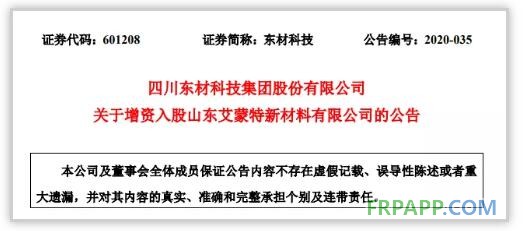 8月18日,四川東材科技與山東萊蕪潤達、李長彬、山東艾蒙特新材料共同簽署《增資擴股協議》,公司與山東潤達擬向山東艾蒙特增資。