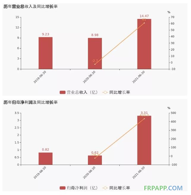 山東玻纖于2021年8月26日披露中報(bào),公司2021上半年實(shí)現(xiàn)營(yíng)業(yè)總收入14.5億,同比增長(zhǎng)61%;實(shí)現(xiàn)歸母凈利潤(rùn)3.3億,同比增長(zhǎng)433.3%;每股收益為0.66元。