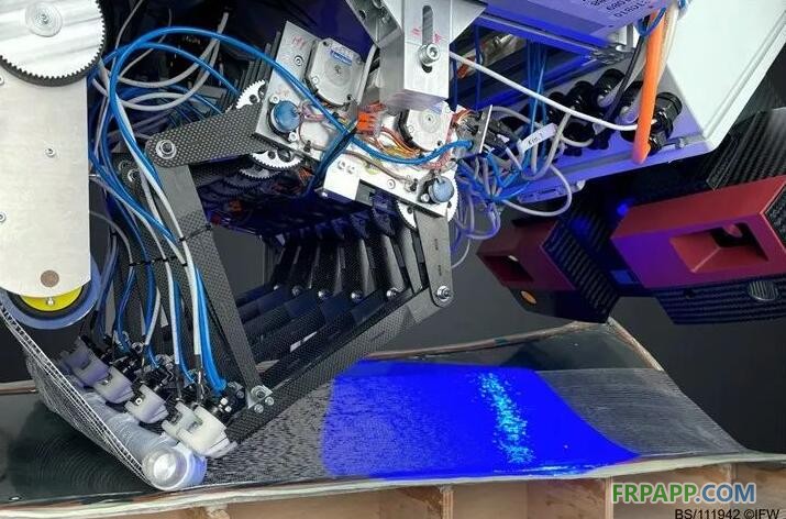 通過開展FlexProCFK和AutoBLADE項目研究,德國萊布尼茨-漢諾威大學(xué)及其合作伙伴正在為制造復(fù)雜的CFRP部件而開發(fā)一種安裝在機器人上的鋪層系統(tǒng)。