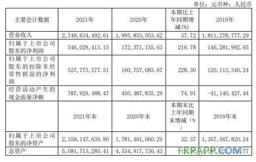 3月29日,山東玻纖發布2021年年度報告。2021年公司實現營業收入27.49億元,同比增長37.72%;歸屬于上市公司股東的凈利潤5.46億元,同比增長216.78%;歸屬于上市公司股東的扣除非經常性損益的凈利潤5.28億元,同比增長228.3%。