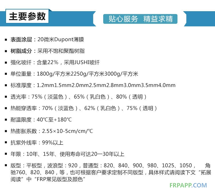波紋(平)板有透光型(不著色、浸射透光)、不透光型(著色、浸射透光)及陰燃型。按用戶使用要求有多種色彩可供選擇。
