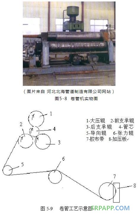 卷管工藝是借助于卷管機上的熱輥將膠布軟化,使膠布中樹脂熔融;在一定張力作用下,借助滾筒與芯模的摩擦力將膠布連續(xù)地卷到芯模上,經(jīng)冷輥冷卻定型,然后在固化爐中固化得到產(chǎn)品的一種生產(chǎn)方式。
