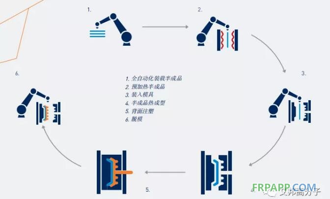 對于一些復雜的特征、安裝位及加強筋,使用模壓成型很難實現,因此市場上出現模壓結合注塑的成型工藝,如ENGEL的Organomelt工藝、克勞斯瑪菲的FiberForm工藝。