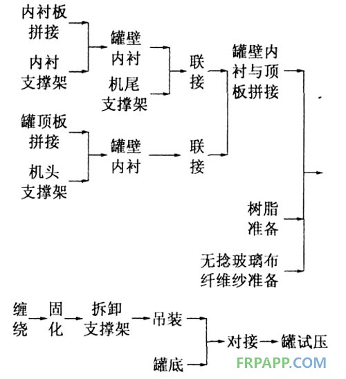 (1)、間斷法:即每貼完一層布后進行修整,固化后用膩子找平,再貼下層直至所需厚度,此法工期長,但質量好。(2)、連續法:即一次貼完至所需要厚度,速度快,但質量不好控制,每幅布上下之間搭接30~50毫米,壁與層之間搭接200~300毫米,各層搭縫均錯開。(3)、用玻璃纖維方格布時,含膠量控制在50%~55%,最好逐層稱布,樹脂定量使用,糊制時應使用專用壓輥,用力沿布的經向和緯向,順一個方向趕氣泡,或從中間向頭趕氣泡,使布層貼緊,含膠量均勻,表面平整密實金屬容器由于腐蝕性液體的不斷浸蝕,使用壽命都不長,有的甚至只有一兩年。由于玻璃鋼有較好的耐腐蝕性能和承載能力,而且加工和修補也方便,總投資金額并不比金屬容器高,在環保領域特別是污水處理行業成為金屬容器替代產品,正在得到越來越廣泛的應用。以下介紹的是容量為200~500立方米的玻璃鋼立式罐成型工藝。