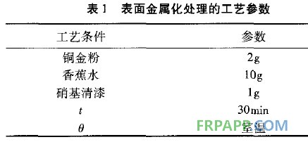 金屬化液中若銅金粉用量過(guò)多,則涂層厚度不均,影響成品外觀效果;用量過(guò)少,則鍍件導(dǎo)電性差,影響鍍層質(zhì)量。而若采用粗化后在玻璃鋼基體上涂導(dǎo)電膠進(jìn)行電鍍的方法,因?qū)щ娔z國(guó)內(nèi)難以買到,需要進(jìn)口,價(jià)格昂貴,成本較高。