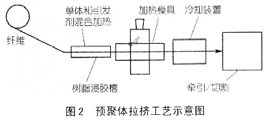 這種拉擠工藝實際與R IM 工藝類似。不同的是,在線制備的樹脂直接注入拉擠模具。