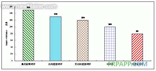 (4) 內壁光滑,介質輸送阻力小。由于模具表面光潔度高,制成的管道內壁哈森-威廉姆斯系數高達150,且其不結垢的特性使管內壁的光潔度不會隨時間而改變;