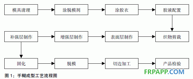 手糊成型工藝又稱接觸成型工藝。即手工作業(yè)把玻璃纖維織物和樹脂交替鋪在模具上,然后固化成型為玻璃鋼制品的工藝。