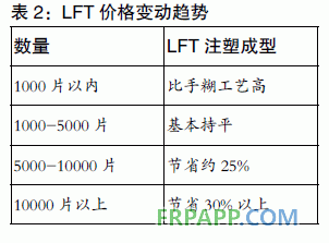 注塑成型工藝模具費(fèi)用采用優(yōu)質(zhì)模具鋼加工制造,而手糊成型工藝模具多采用木質(zhì)模,故注塑成型模具成本要比手糊成型工藝高出一些。但是注塑成型自動化程度較高、成型時間短,而手糊工藝成型時間長、人工成本高,故隨著生產(chǎn)量的增加,注塑成型的經(jīng)濟(jì)優(yōu)勢會越來越明顯,制造成本大幅減少。