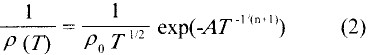式中:p(T)為溫度為耐的電阻率, 為常態下的電阻率; 為絕對溫度; 為載流子跳躍的能壘;力為空維數(月取l、2或3分別對應于一、二和三維傳導)。取門=3,對(2)式取對數得式(3)。