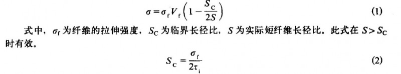 纖維復合材料界面性能對材料性能有著很大的影響。對于基體較弱而纖維具有高強度高彈性橫量的復合材料來說,應力是通過界面而從纖維傳遞到基體中的。對于短纖維復合材料,界面強度決定著臨界斷裂長徑比及復合材料的增強效果。較高纖維含量、單向短纖維復合材料的拉伸強度ó可表示為: