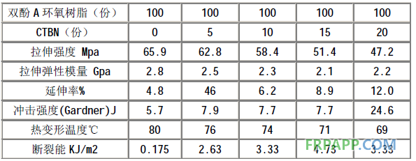 表3.不同水平CTBN對(duì)增韌結(jié)果的影響