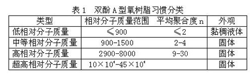 雙酚A型環(huán)氧樹脂習(xí)慣分類