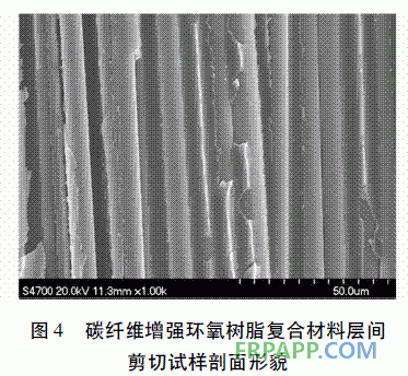 ( 3) CF /EP 復(fù)合材料的層間剪切破壞大部分發(fā)生在纖維之間和樹脂之間外,極少部分發(fā)生在纖維和樹脂的界面處,樹脂和纖維之間具有中等粘結(jié)強度界面;