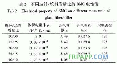 在BMC工藝中,滑石粉和玻璃纖維本身是絕緣體,具有較好的電絕緣性。但是在BMC制備過程中,由于樹脂的浸潤性不好以及纖維與樹脂粘接性不好等問題存在,研究不同玻纖/填料質量比對電性能的影響很有必要。