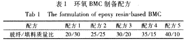 本文主要是以環氧樹脂為基體,通過設計玻璃纖維/填料/環氧樹脂三元復合材料組分的配方及性能,研究了不同玻纖/填料質量比對BMC制品力學性能、電性能、吸水率的影響,繼而進一步考察不同質量比對其性能的影響規律,并討論其原因。