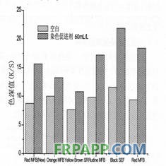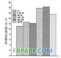 如圖9,染浴中加入染色促進劑后,各只分散染料在聚乳酸纖維上的上染率顯然都有明顯的提高,和上染率的提高相對應,加入染色促進劑后織物的色深值也有了較大的提高。從圖中可以看出,分散紅se-gfl、分散藍rse和分散深藍hgl在聚乳酸織物上的色深值提高得最明顯,而其它各種分散染料在加有染色促進劑的染色條件下其在聚乳酸織物的色深值也有所提高。這說明可以通過在染色過程中加入染色促進劑的染色方法來增塑聚乳酸纖維,提高分散染料在聚乳酸纖維上的上染率和在織物上的色深值。