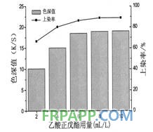 | 圖3乙酸正戊酯的濃度對分散深藍hgl200染聚乳酸纖維的上染率和織物色深值的影響 |